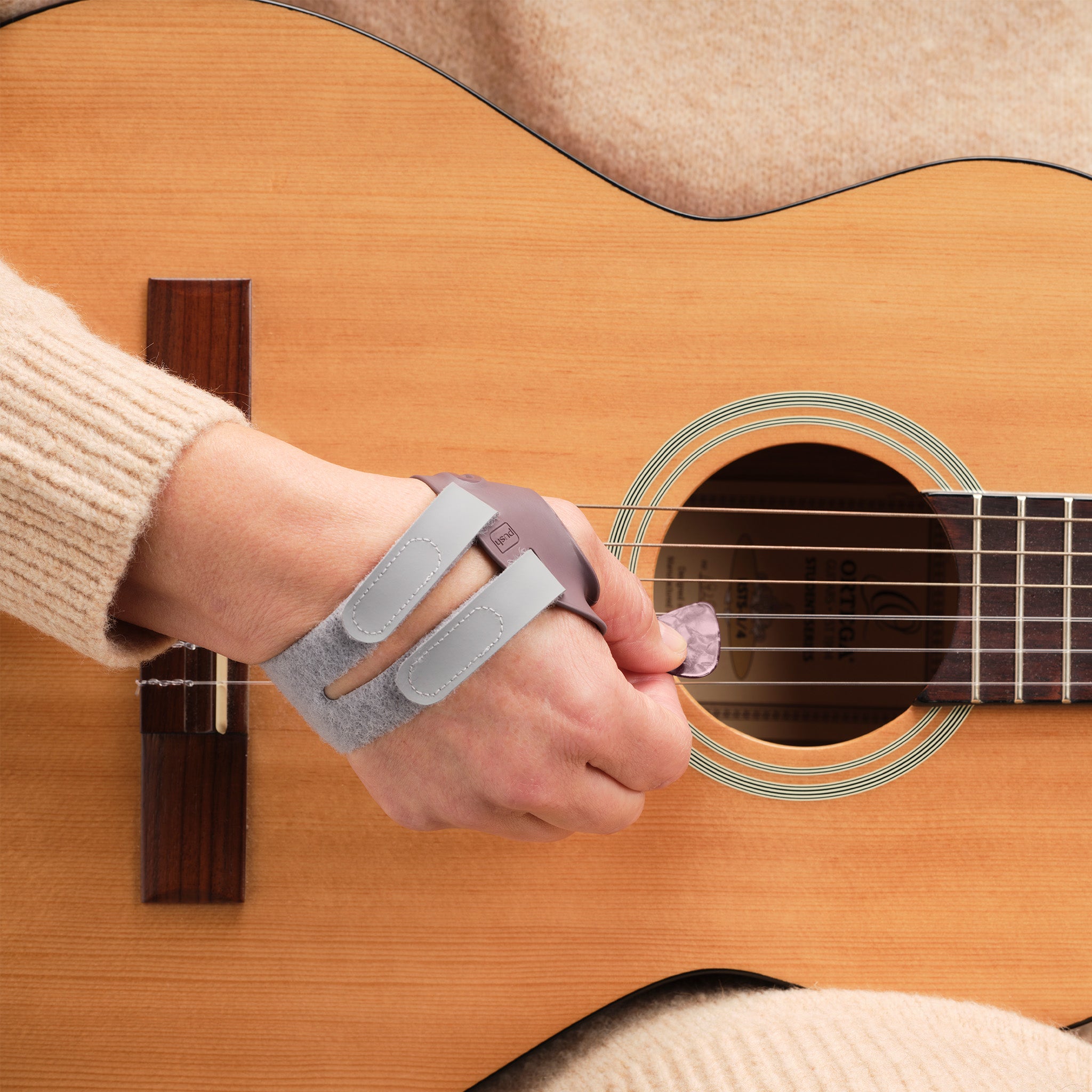 Made of thin plastic with a reinforced aluminum core, designed to provide maximum stability without restricting the natural movements of the hand. Water resistant and can be used in all environments.